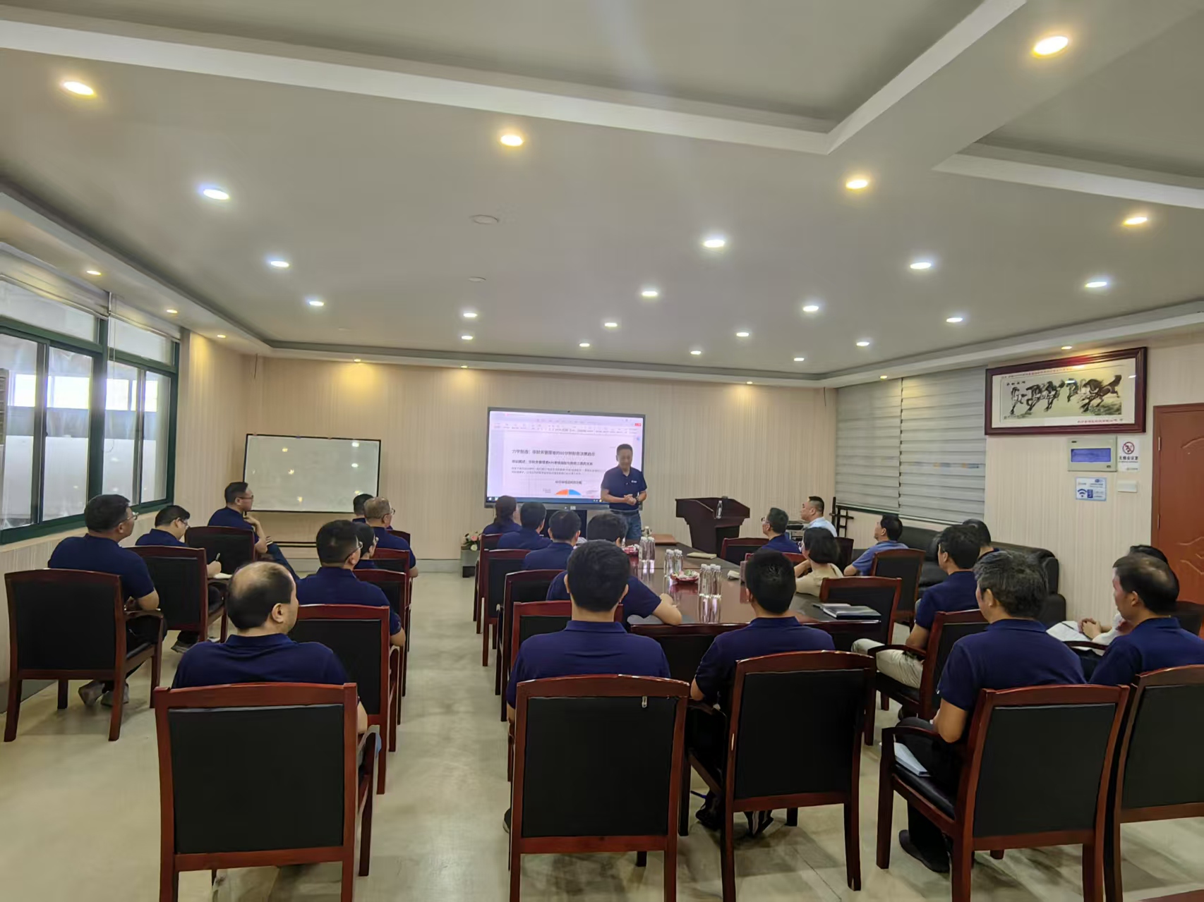 錢所開講,金句頻發,現場掌聲不斷。他首先從專業出發,為大家講解了三大財務報表,并通過生動的案例分析,幫助大家理解并掌握簡單實用的財務思維;然后,他用通俗易懂的方式分析了我司其中五個部門的現狀,提出議題讓大家用剛剛學到的知識參與互動討論;最后錢所給每個部門送出了關鍵金句,并對金句做出講解分析,幫助大家更好地將所學財務知識帶入日常工作,學以致用。培訓尾聲,錢所給在場人員送出寄語:“?宇智造,精機繪彩;財務賦能,基業長?! 愿每?位管理者洞悉數字價值,驅動創新,共鑄輝煌!”